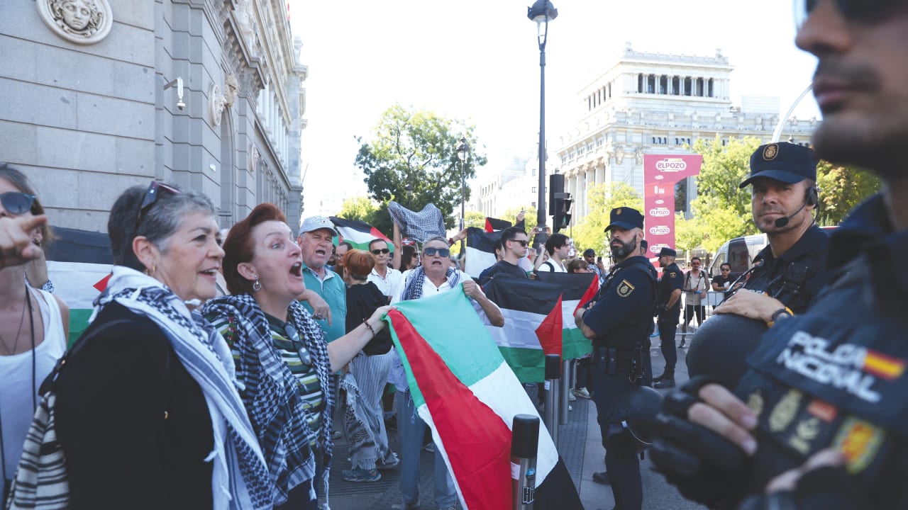 AGENTES DE POLICÍA bloquean a manifestantes antiisraelíes antes de la carrera ciclista Vuelta de España, a principios de esta semana( crédito de la foto : BRUNA CASAS/REUTERS )
