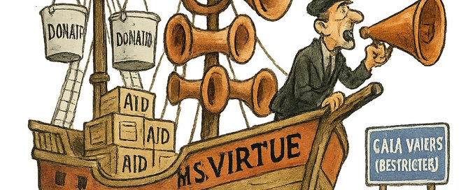 Por todos los medios, combatamos el cinismo —el nuestro, el suyo, el de todos—. Pero seamos sinceros. Si su barco zarpa principalmente para ser visto, si su manifiesto se compone principalmente de adjetivos, si su ruta se elige por la probabilidad de una pelea en lugar de la certeza de una entrega, entonces no está haciendo humanitarismo. Está haciendo marketing. Y en ese mercado, el dolor es la materia prima, los donantes son los consumidores y las personas a las que dice defender se utilizan como logotipo.Por todos los medios, combatamos el cinismo —el nuestro, el suyo, el de todos—. Pero seamos sinceros. Si su barco zarpa principalmente para ser visto, si su manifiesto se compone principalmente de adjetivos, si su ruta se elige por la probabilidad de una pelea en lugar de la certeza de una entrega, entonces no está haciendo humanitarismo. Está haciendo marketing. Y en ese mercado, el dolor es la materia prima, los donantes son los consumidores y las personas a las que dice defender se utilizan como logotipo.
